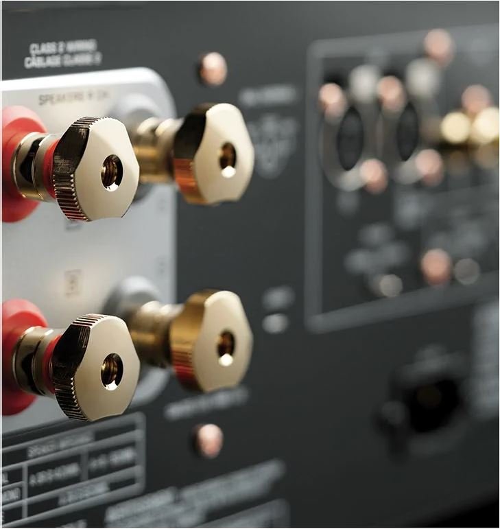 Το M-5000 χρησιμοποιεί υπερμεγέθους τερματικά ηχείων τύπου (βίδας) για να εξασφαλίζεται η ευκολία στη χρήση και μια ασφαλής σύνδεση. Κατασκευασμένο από ένα καθαρό ορείχαλκο, το αρχικό σχέδιο Yamaha υποδηλώνει μια προσεγμένη λεπτομέρεια και κορυφαία ποιότητα. Η πλάκα βάσης 3 mm είναι κατασκευασμένη από καθαρό ορείχαλκο για αντοχή και ακαμψία και βοηθά στη μείωση της παραμόρφωσης λόγω των μη μαγνητικών ιδιοτήτων του.
