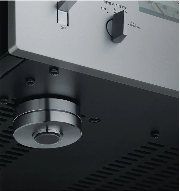 Όλες οι πτυχές του σχεδιασμού M-5000 εξετάστηκαν κατά την παραγωγή αυτού του μοντέλου. Η κατασκευή του αποπνέει τη βασική δεξιοτεχνία και αντικατοπτρίζει μια εμμονή με την επίτευξη των υψηλότερων επιπέδων απόδοσης. Τα πόδια δεν αποτελούν εξαίρεση. Πρωτότυπο στο σχεδιασμό του, τα βαρέως τύπου πόδια από ορείχαλκο λειτουργούν είτε ως πλήρως υποστηριζόμενες αιχμές είτε με βάση προστασίας από γρατσουνιές για χρήση σε ευαίσθητες επιφάνειες.